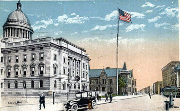 As the postcard image collection has grown to over 470 postcards, the time for the page to load had grown to the point that it has become very difficult for people who lack high speed access to the Internet to view the cards. For that reason, I am splitting up this web-page by topic. Some postcards fit into multiple topics, and will end up being on multiple pages. This is an on-going process, I added a new "City Hall & Courthouse" page today. Thank You for your patience, support, suggestions, and help with this website!