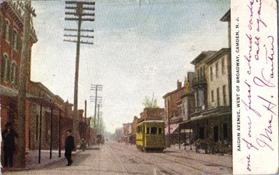 West of Broadway looking west on Kaighn Avenue from Baring Street Card Mailed 1908 |