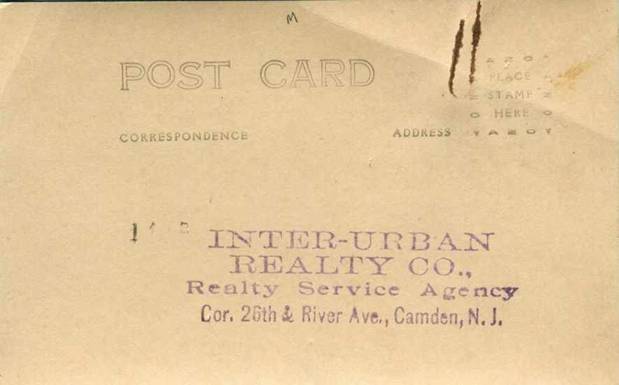showing corner of Cooper Park Second & Penn Streets, Camden N.J." 1920s |