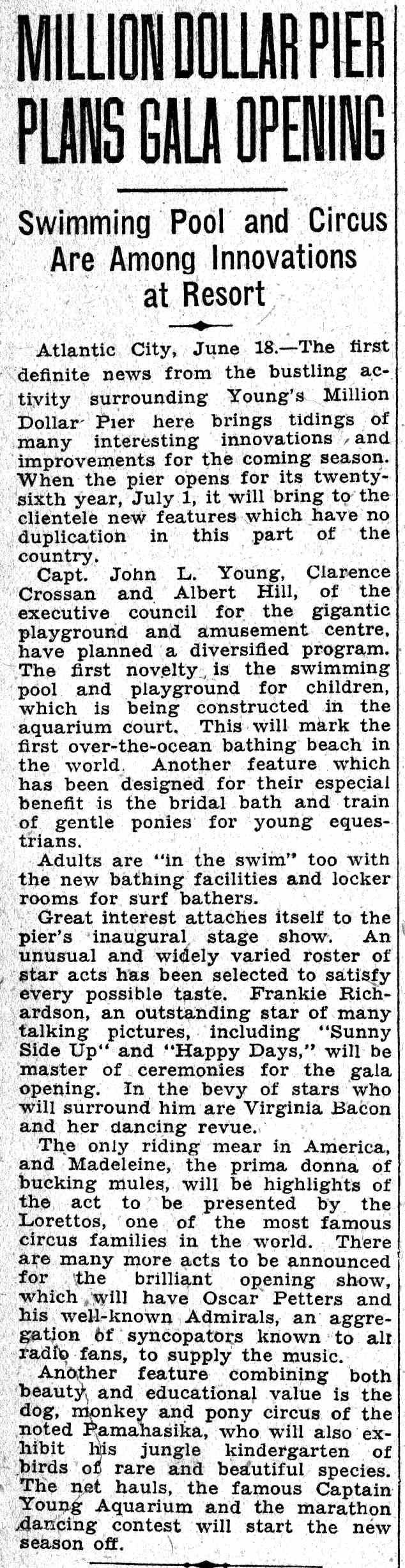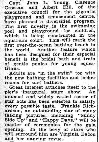Another early sound musical and only the second film to be released in 70mm widescreen, I've never seen the entire film, but I'm going to have to make a point of finding this one… the cast is simply amazing. Frank Richardson is billed simply as "Minstrel show performer" in this one, in the musical number "Crazy Feet", which you can view from this page. A comment on at imdb.com really says is all: "Crazy Feet" made the whole movie worthwhile. Adorable Dixie Lee burst out of a modernistic background, which featured chorus girls, in silhouette, in letters featuring the name of the song - at one point girls came down from the ceiling, suspended on swings, showing their "crazy feet". Dixie Lee was married to Bing Crosby and her guidance really helped him on the road to success. She has a wonderful "jazz oriented" voice and she even does a chorus of scat!!! Chorus girls pile out of giant shoes, Tom Patricola does an eccentric dance, Frank Richardson leads a chorus of clowns - did I mention the beautiful chorus girls!!!" Frank Richardson also had another number in this film, another big production number, titled Mona. A video clip can be seen below. One of those chorus girls was Betty Grable.. in her first film appearance. Other members of the cast of note… and it is a long list, include Janet Gaynor, Charles Farrell, victor mclaglen, Marjorie White, Stewart Erwin, george jessel, Will Rogers, El Brendel, one-time world heavyweight champion James J. Corbett, Warner Baxter, Edmund Lowe, J. Farrell McDonald, Sharon Lynn, Frank Albertson, and Camden, New Jersey's own Ann Pennington… and I've probably missed a couple of other familiar faces and names. |