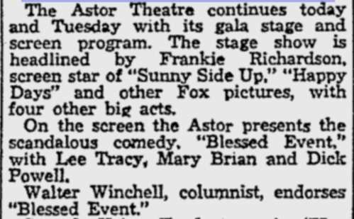 Frank Richardson had another off-camera singing role in this Janet Gaynor and Charles Farrell vehicle which also featured veteran actore Lucien Littlefield and Louise Fazenda. |