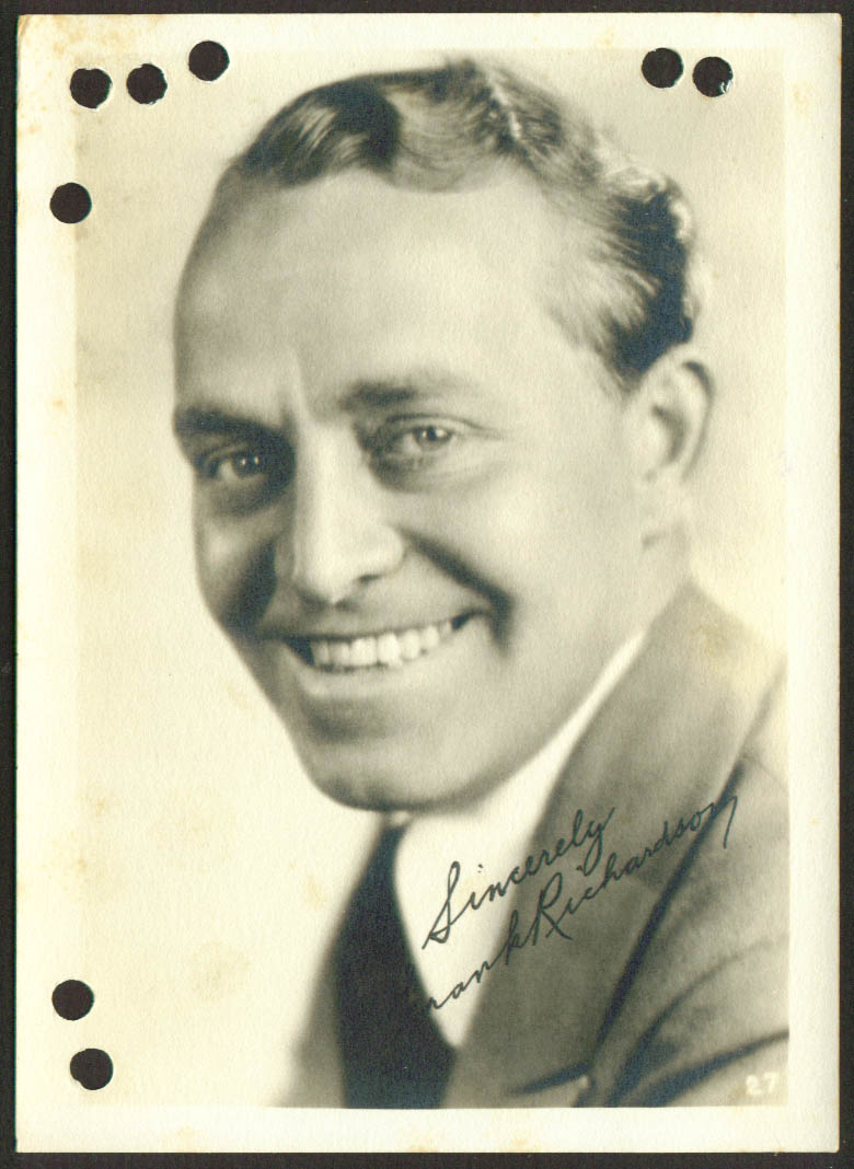 Warner Brothers, using the Vitaphone sound-on-disc process, films "Frank Richardson, The Joy Boy of Song" which is released on February 17, 1928. As of December 2013 this film has not been reissued. |