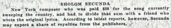 have your songs published," said Secunda in a 1961 interview with