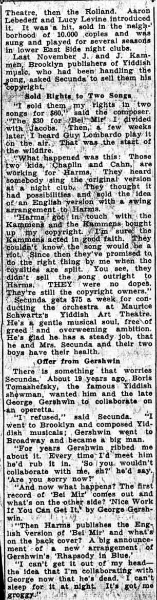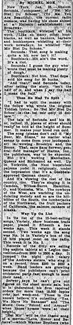 successful recording of Sholom Secunda's "Bei Mir Bist Du Schön"
