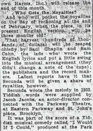 song, with lyrics by Sammy Cahn and Saul Chaplin. The only Yiddish that